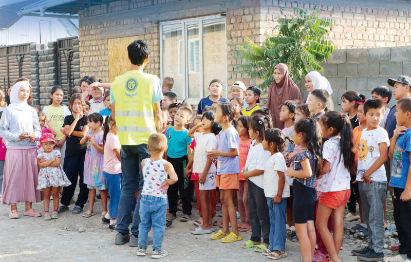 東路上でムスリムの子どもに福音を語る伝道者、キルギスタンの首都ビシュケクで