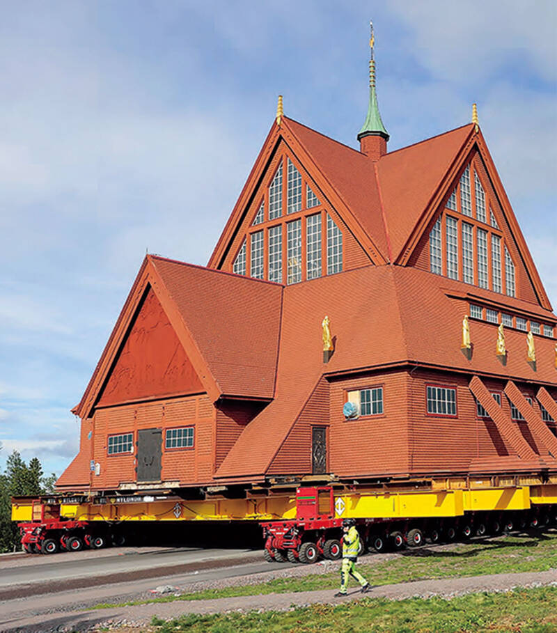スウェーデン北部のキルナ市で、おそらく前例のない出来事がありました。それは1912年に建てられた木造建築の福音ルーテル派教会堂が、そのまま移動されたことです。幅40メートル、重さ672トンの教会堂は、8月18日と19日に専用の運搬車で市内を5キロメートル移動しました。しかし、この移動のためには、まず教会周辺の地面を徹底的に掘削する必要がありました。この異例の移動には約4,450万ユーロ(約7億7,765万円)の費用がかかりました。キルナ市の鉱山では、鉱石の採掘によって地盤が変動し、市街地の一部が崩壊したり水没したりする恐れがあるためこの手段が取られたそうです。そのため、住民、家屋、文化遺産は長年にわたり移転を余儀なくされてきました。建築家グスタフ・ヴィックマン氏によって建てられたこの教会堂は、スウェーデンで最も美しい教会建築の一つと言われています。